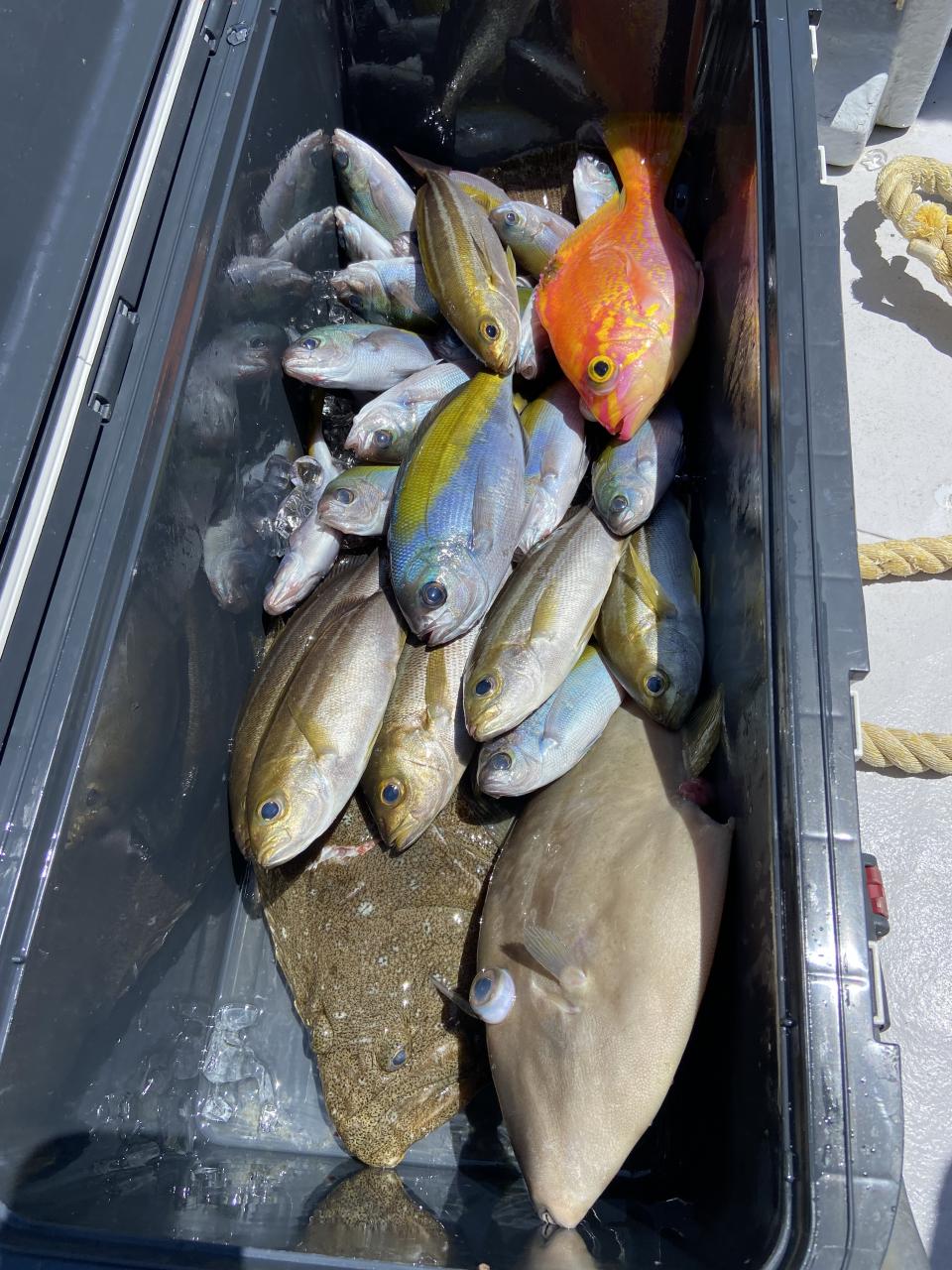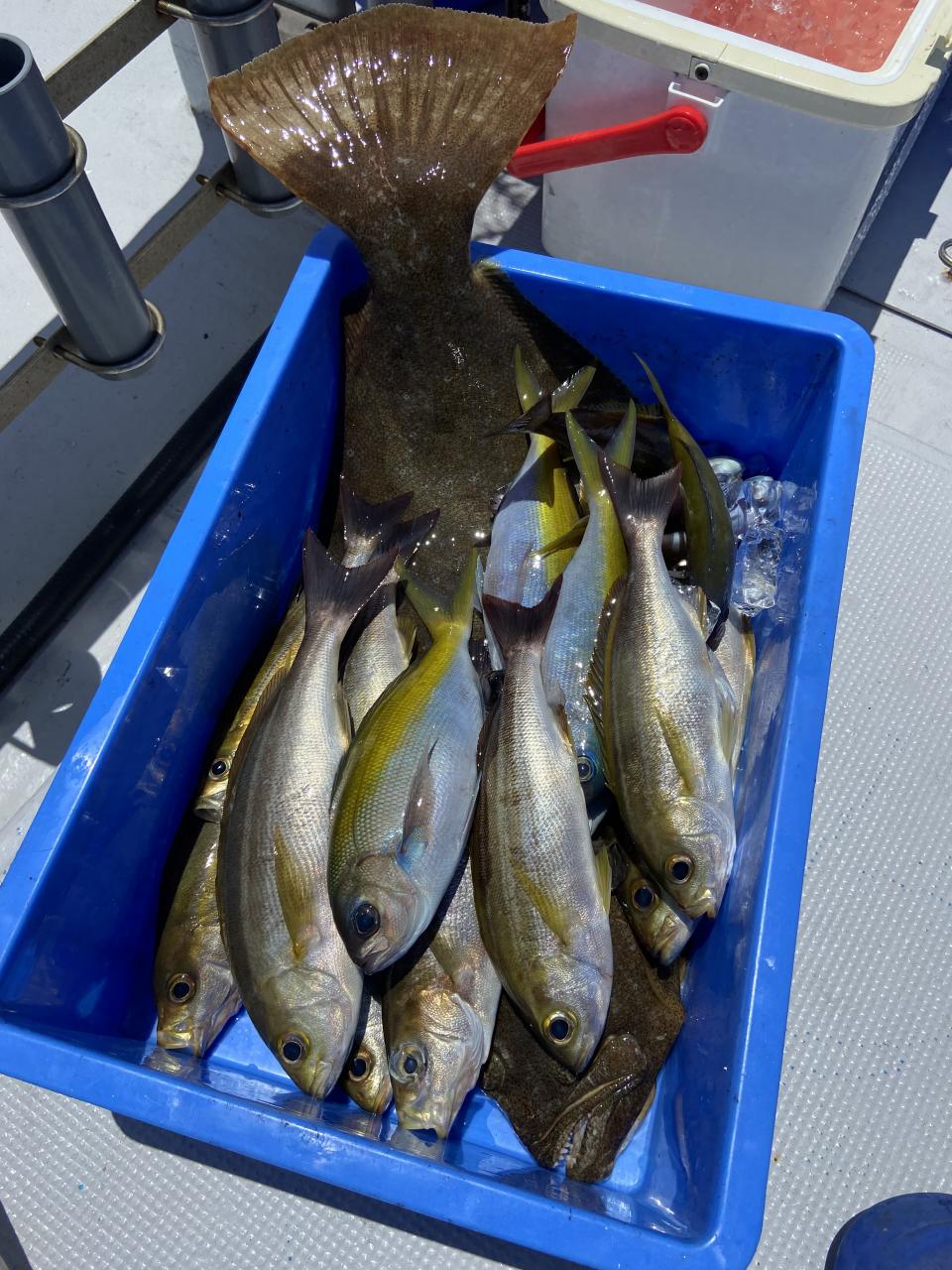 ウメイロ、イサギ、アカイサギなど良く当たりあり外道で大ヒラメまで釣れて楽しめました。